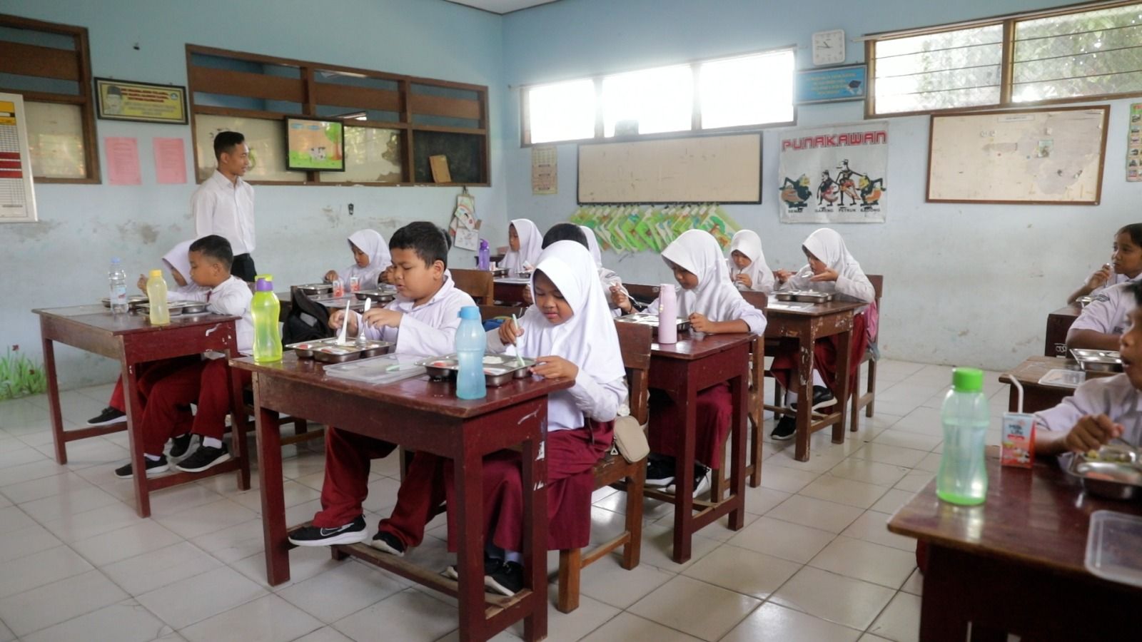 Apri Dwi Prasetyo, salah satu guru di SD tersebut pun mengungkapkan bagaimana antusiasme para guru dan siswa menyambut penerapan Makan Bergizi Gratis yang dimulai hari ini.