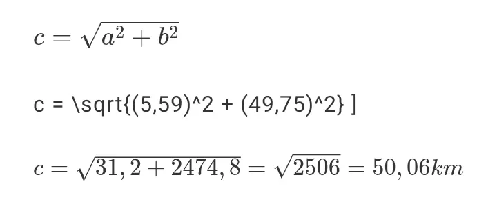 Metode Pythagoras menghitung jarak garis lurusnya sekitar 50 km, lebih pendek 10 km dari hasil Google Maps.